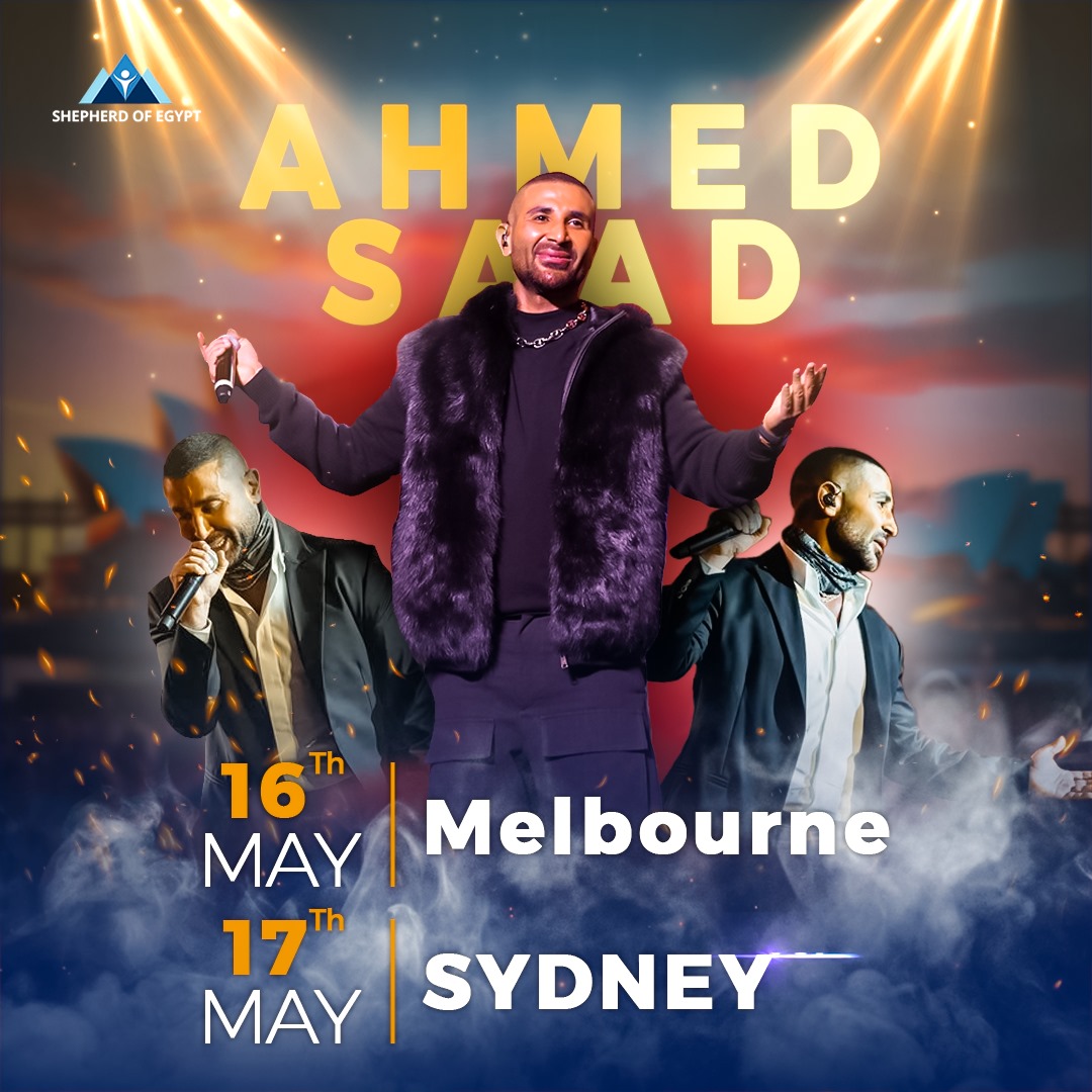 الفنان أحمد سعد يحيي حفلتين لصالح راعي مصر باستراليا 16و 17 مايو