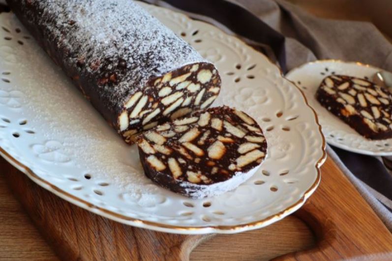 نأتي بعلبة مدورة أو يمكننا استخدام القالب الخاص بالانجلش كيك مبطّناً بورق التّغليف أو ورق الزّبدة حتّى يسهل إخراجه، ويُرّص البسكويت جيداً بالقالب، ويغطّى ويوضع بالفريزر لمدّة ساعةٍ كاملةٍ، وبعدها يوضع بالبرّاد لمدّة ساعتين، ويتمّ إخراجه ويقطّع لشرائحٍ رفيعةٍ، ويقدّم .