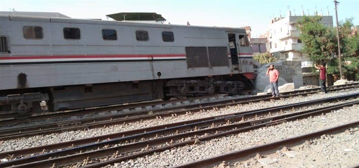 خروج قطار شبين القناطر عن القضبان واصطدامه بـ"الصدادات".. والأهالي: القطار بدون سائق