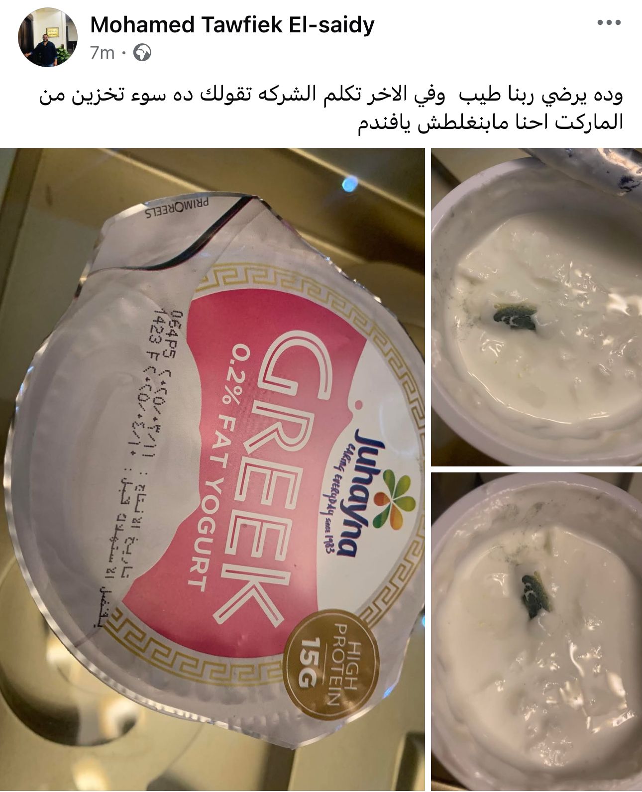 عاجل.. شكاوي من وجود عفن بمنتجات زبادي شركة جهينه