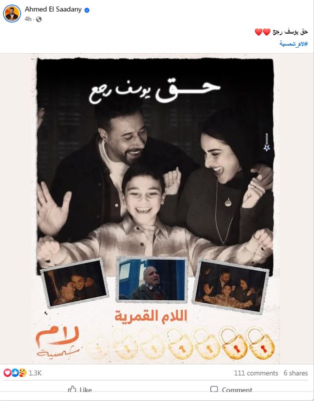ونشر السعدني عبر حسابه الرسمي "فيس بوك"، صورة من الكواليس وعلق عليها: "حق يوسف رجع".