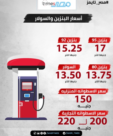 - بلغ سعر بنزين 92 نحو 15.25 جنيه.