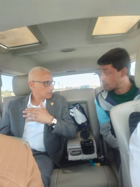محافظ شمال سيناء يصطحب مواطن في سيارته خلال عودته من الشيخ زويد