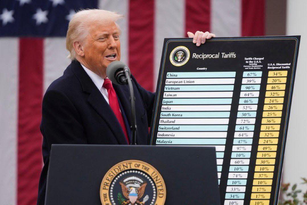وأعلن ترامب سلسلة من الرسوم الأمريكية على الواردات من كبار الشركات التجاريين، ووصلت إلى 46% على فيتنام، و34% على الصين ، كما ذكر ترامب أن الحد الأدنى للرسوم الجمركية سيكون 10%.