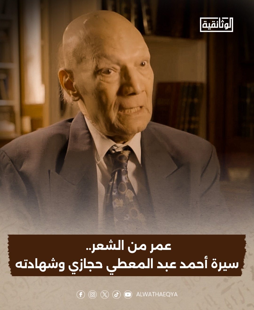 "عمر من الشعر.. سيرة أحمد عبد المعطي حجازي وشهادته".. على "الوثائقية" قريبًا