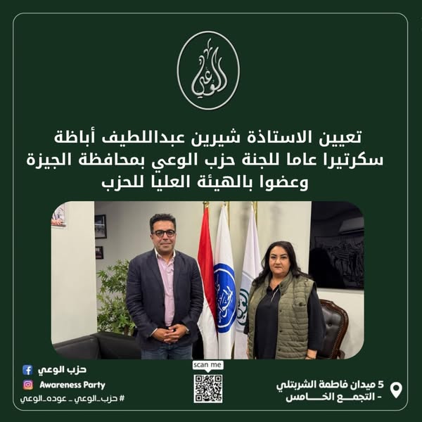 حزب الوعي: يعلن شرين أباظة سكرتيرا عاما للجنة حزب الوعي بالجيزة
