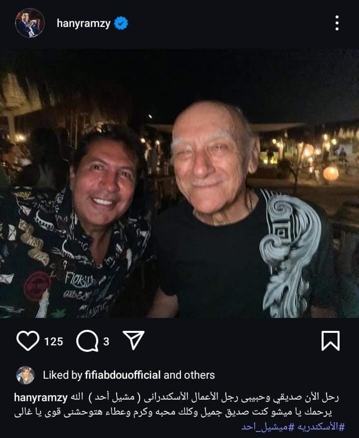 ونشر هاني رمزي صوره تجمعه مع راجل الأعمال المصري ميشيل أحد، وذلك من خلال حسابه الرسمي عبر موقع تبادل الصور والفديوهات القصيرة “إنستجرام”، وكتب: “رحل الأن صديقي و حبيبي رجل الأعمال الأكندراني (ميشيل أحد) ”.