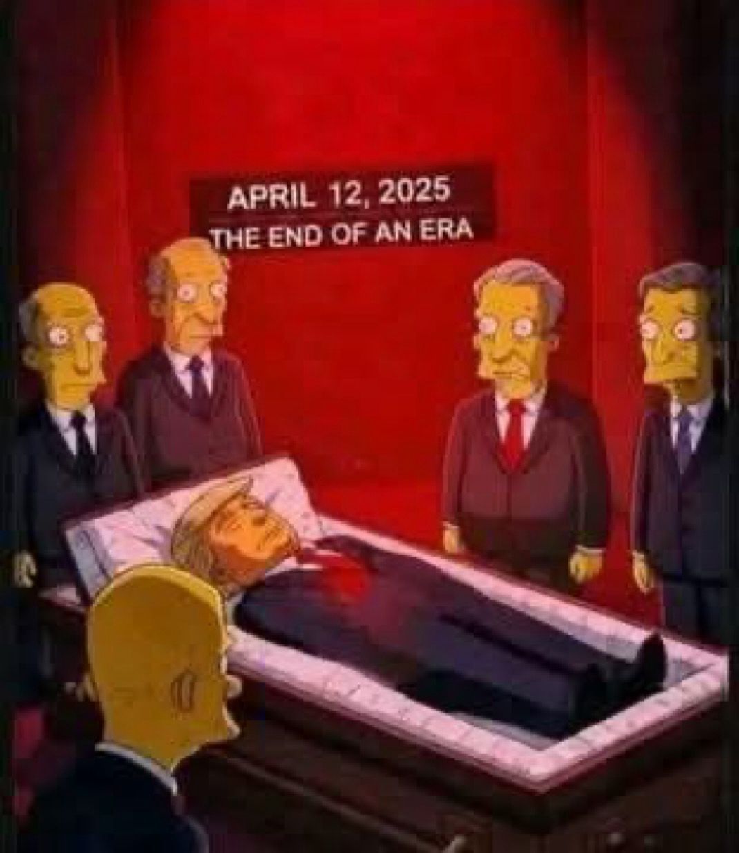 وتضمن الفيديو مشهد من مسلسل عائلة سيمبسون، تظهر فيه شخصية تشبه دونالد ترامب، الرئيس الحالي للولايات المتحدة، محمولة في نعش ومحاطة بشخصيات سياسية، وادعى الكثيرون أن المسلسل تنبأ بوفاة ترامب في 12 أبريل 2025.