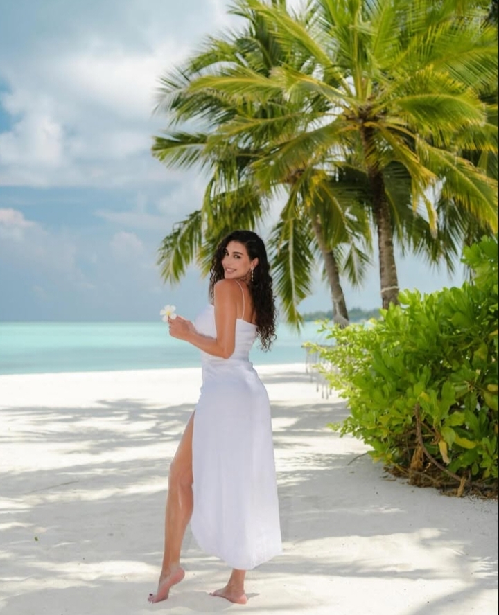 ياسمين صبري تخطف الأنظار علي شواطئ المالديف