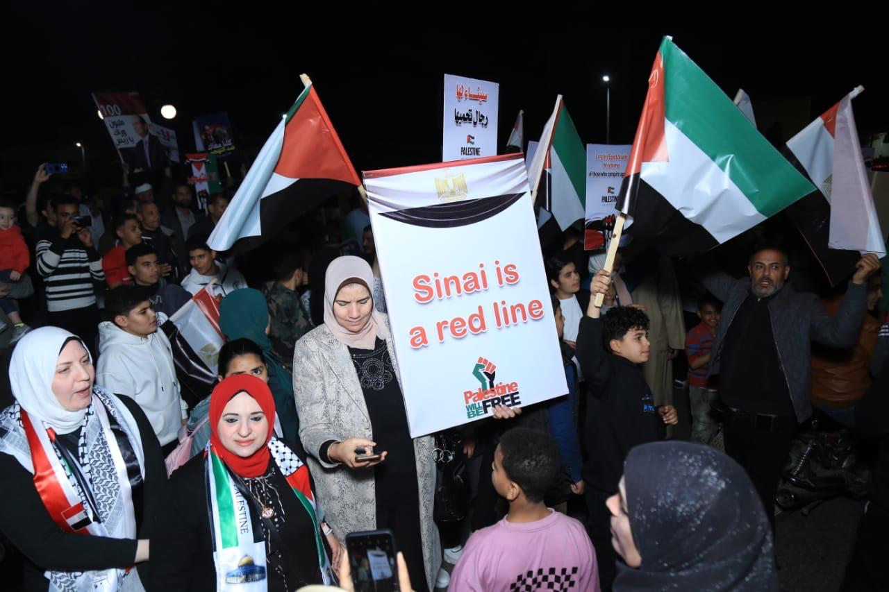 - أطلق الأهالي عددًا من الهتافات منها "لا لا للتهجير" و"إحنا معاك يا ريس" و"تحيا مصر".