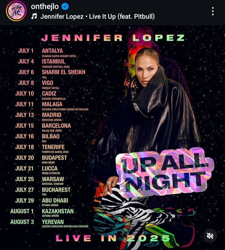 وكشفت جينيفر لوبيز عبر صفحاتها الرسمية على مواقع التواصل الاجتماعي، عن خريطة مواعيد حفلاتها القادمة ، وجاءت كالتالي: