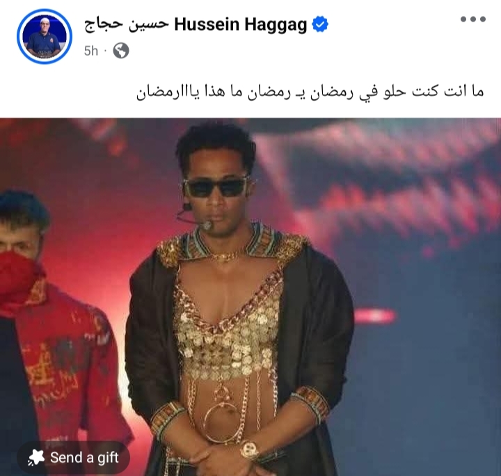 ووجه الفنان حسين حجاج رسالة للفنان محمد رمضان بعد إطلالتة الأخيرة في أمريكا، حيث نشر صورة لـ محمد رمضان من خلال حسابه الرسمي عبر موقع التواصل الاجتماعي فيسبوك، وعلق: "ما انت كنت حلو في رمضان يا رمضان ماهذا يا رمضان".