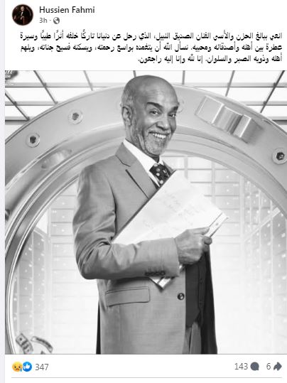 حسين فهمي ناعيا سليمان عيد:"ترك خلفه أثرًا طيبًا وسيرة عطرة" (صورة)
