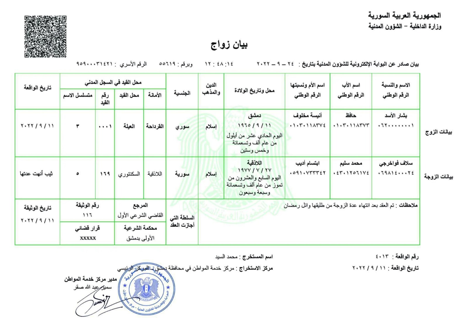 عاجل.. مستند رسمي يكشف حقيقة زواج الفنانة السورية سلاف فواخرجي من بشار الأسد