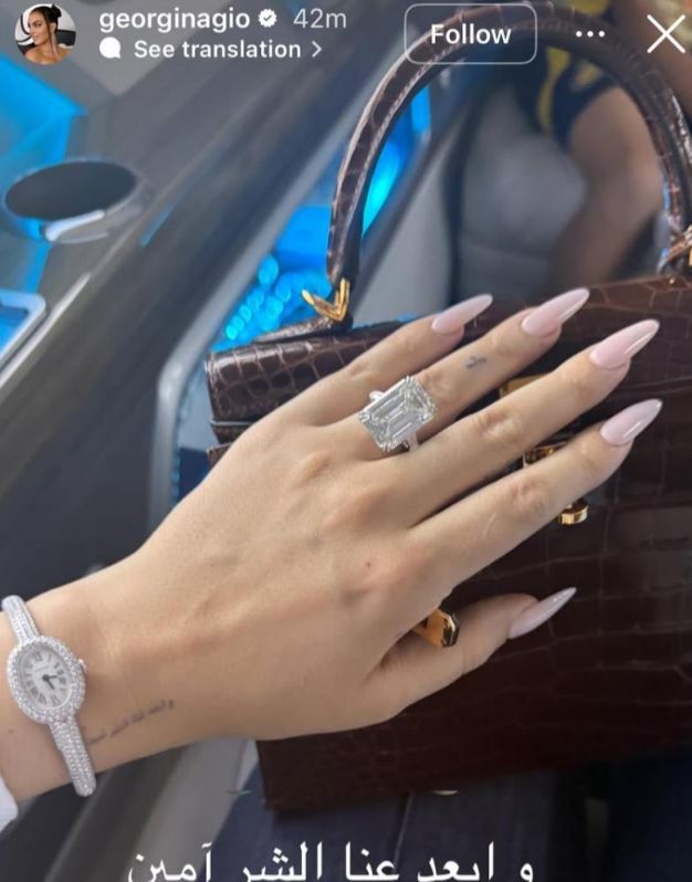 و ظهرت جورجينا وهي تمسك حقيبة فاخرة، وكان الوشم واضحًا على معصمها، ما جعل العديد من المتابعين يربطون هذه الخطوة ارتباطًا وثيقًا بالثقافة العربية، خصوصًا مع انتقالها للعيش في السعودية منذ عام 2023 برفقة رونالدو، هذا الانتقال كان له تأثير واضح على حياتها وأساليب تعبيرها عن نفسها.