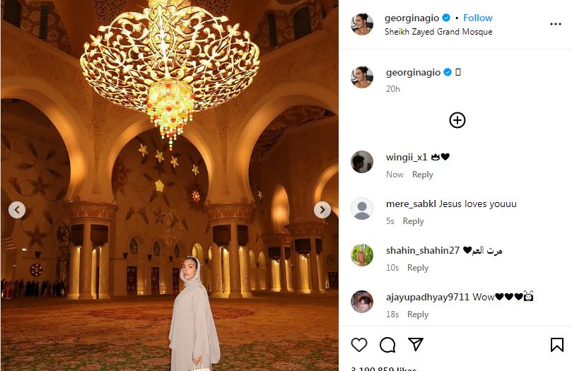 نشرت عارضة الأزياء والممثلة الأرجنتينية جورجينا رودريجيز، مجموعة من الصور وذلك أثناء زيارتها لمسجد الشيخ زايد في أبوظبي.