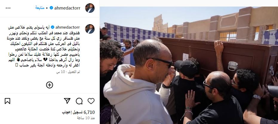 وأختتم" عالعموم ياحبييي مصر كلها زعلانة عليك سلاما لمن رحلوا وما زال أثرهم بداخلنا سلام ياصاحبي اللهم اغفر له وارحمه وادخله الجنة بغير حساب ".