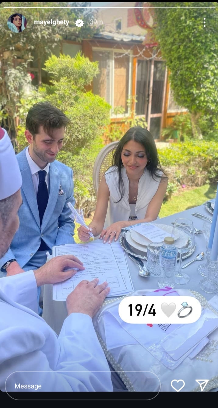 وشاركت مي الغيطي صورة من عقد قرانها علي الطبيب البريطاني أندرياس براون، من خلال حسابها الرسمي عبر موقع تبادل الصور والفديوهات القصيرة إنستجرام، عبر خاصية استوري، وعلقت: "19/4".