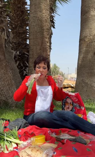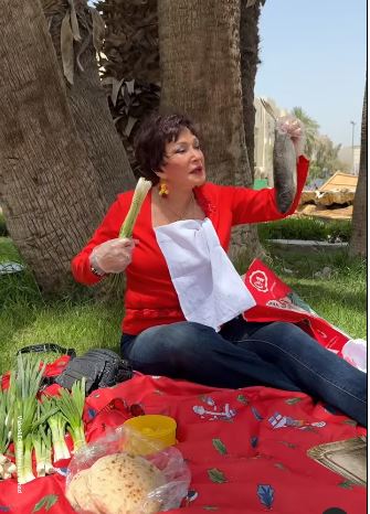 "بالفسيخ والبصل الأخضر".. لبلبة تحتفل بشم النسيم بإحدى الحدائق العامة (فيديو)