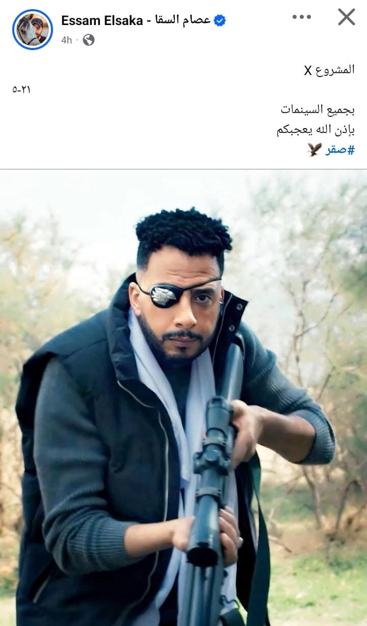 ويواصل عصام السقا الترويج لـ دوره في فيلم المشروع X، استعدادًا لطرحه في الفترة المقبلة، وشارك عصام السقا جمهوره صورة من كواليس تصوير الفيلم، حيث يجسد دور شاب يُدعي “صقر”، من خلال حسابه الرسمي عبر موقع التواصل الاجتماعي “فيسبوك”، وعلق: "المشروع X.. بجميع السينمات 21ـ 5 بإذن الله يعجبكم (صقر)".