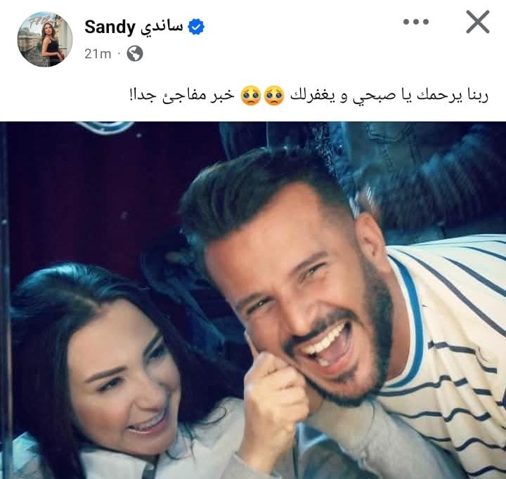 ونشرت ساندي صورة تجمعها بالإعلامي الراحل صبحي عطري، من خلال حسابها الرسمي عبر موقع التواصل الاجتماعي “فيسبوك”، وكتبت: “ربنا يرحمك يا صبحي و يغفرلك.. خبر مفاجئ جدًا”.