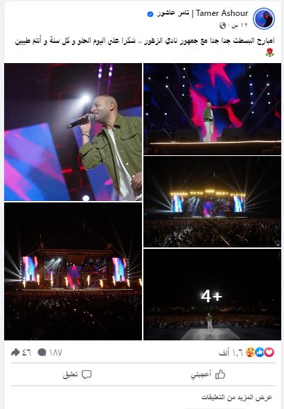 "شكرآ علي اليوم الحلو".. تامر عاشور يوجه رسالة لجمهوره بعد حفله بنادي الزهور