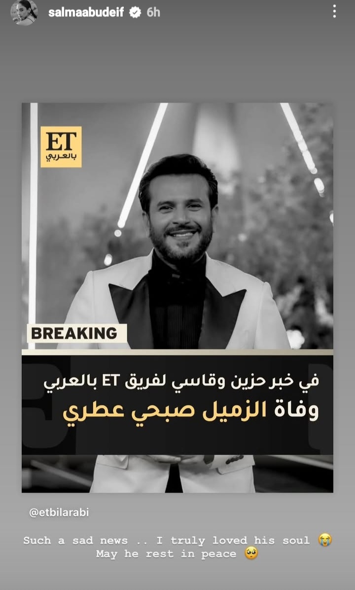 بينما نعي النجم تامر حسني صبحي عطري عبر صفحته الرسمية قائلآ "القاء لله كان إنسان حقيقي طيب الله يرحمك يا صبحي يا حبيبي ويصبر أهلك .