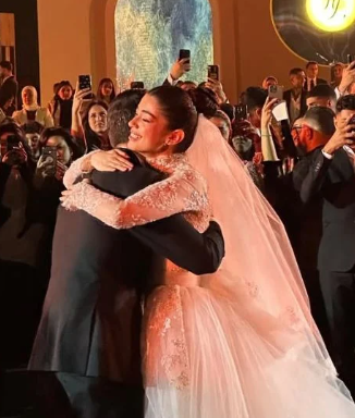 وفي لحظة مؤثرة، لم يتمكن احمد زاهر، والد العروس، من كبح دموعه أثناء عقد القران، إذ بدا متأثرًا جدًا وهو يحتضن ابنته ليلى، متأملًا في فرحته لهذا اليوم الذي شهد زواجها.