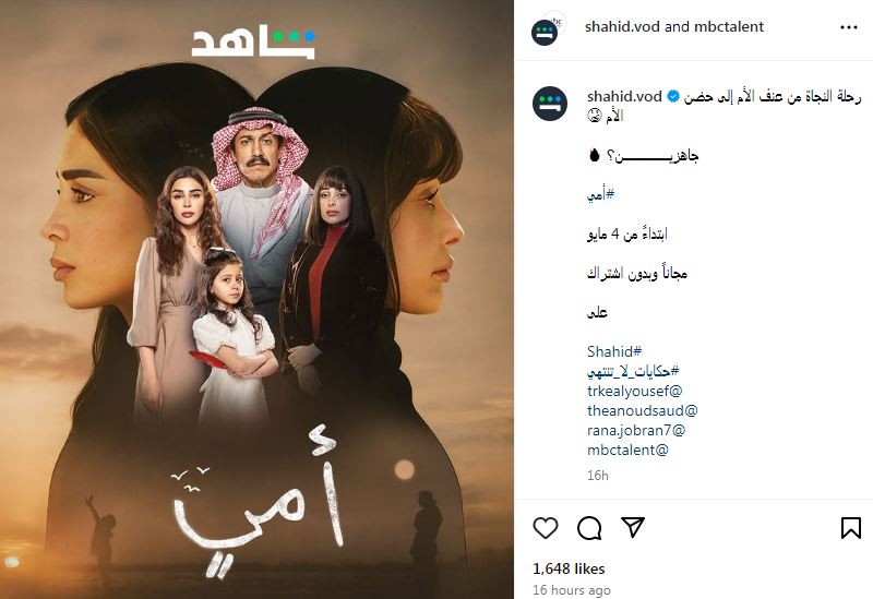 أعلنت المنصة الرقمية "شاهد" عن موعد عرض المسلسل السعودي "أمي" المقتبس من المسلسل التركي الشهير Anne، والذي سيعرض حصرياً على منصتها .