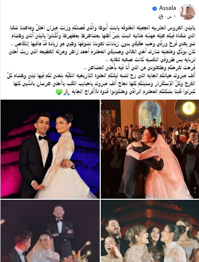 ونشرت أصالة مجموعة من صور حفل الزفاف مرفقة تعليق تكشف سبب غيابها عن الحفل كما هنأت الثنائي قائلة " ياليلي العروس المتربيه الجميله الخلوقه يابنت أبوها والّلي قصتكم وزنت ميزان اختلّ وماعدنا شفنا اللي شفناه فيكم عيله مهذبه مثاليه البنت بتبرّ أهلها بمشاعرها بمظهرها وأكّدتوا ياليلى أنتي وهشام شو يعني فرح ورقي وحب حقيقي بدون زيادات تعودنا نشوفها وهيي مو زياده قدّ مافيها إنتقاص".