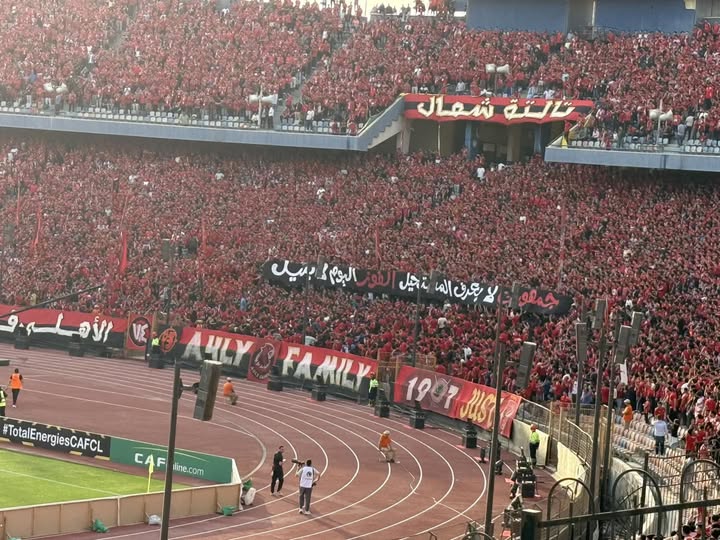 وحرصت جماهير النادي الأهلي المتواجد في استاد القاهرة على رفع لافتة والتي حملت عبارة: “جمهور لا يعرف المستحيل الفوز اليوم لا بديل”.