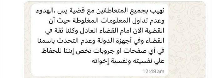 وتكمل مطالبة: "الهدوء يا جماعة من فضلكم وبلاش تداول معلومات مغلوطة، القضية الآن أمام القضاء العادل، وكلنا ثقه في القضاء.. ياريت عدم التحدث باسمنا في أي صفحات أو جروبات تخص ابننا للحفاظ على نفسيته ونفسية إخوته، تخيلوا مستقبله هيبقى شكله إيه لما يكبر؟".