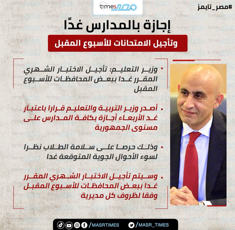 وزير التعليم: منح غدا إجازة لكافة العاملين بالمدارس والطلاب وتأجيل الاختبار الشهري