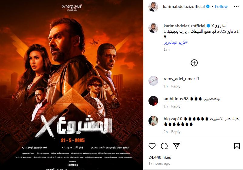 ونشر كريم عبد العزيز البوستر الرسمي للفيلم عبر صفحته الرسمية "إنستجرام" وكتب علية " المشروع X 21 مايو 2025 في جميع السينمات .. يارب يعجبكم".