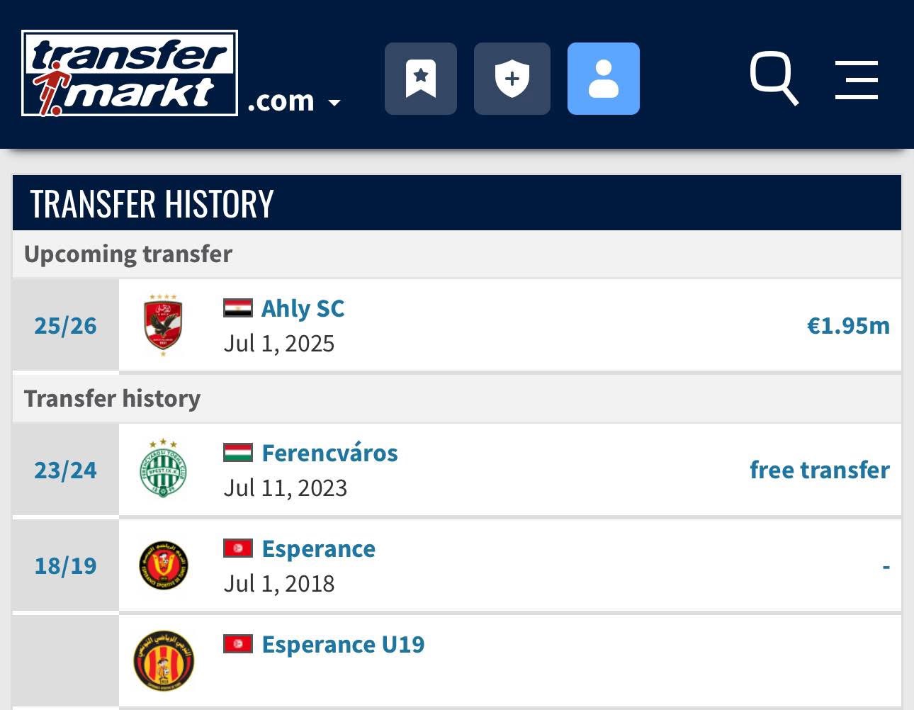 كشف موقع "ترانسفير ماركت" المتخصص في انتقالات اللاعبين عن مفاجأة جديدة بخصوص قيمة صفقة انتقال لاعب الوسط التونسي محمد علي بن رمضان إلى النادي الأهلي قادمًا من فريق فيرينكفاروزي المجري.