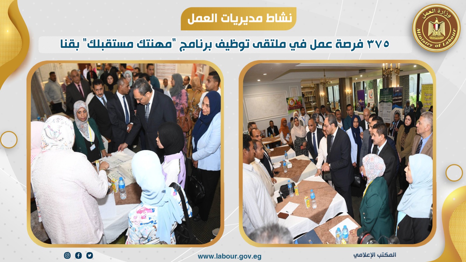 افتتح الدكتور خالد عبد الحليم، محافظ قنا، فعاليات ملتقى التوظيف والتثقيف المهني، الذي نظمته مديرية العمل بمحافظة قنا، تحت رعاية الوزير محمد جبران وزير العمل، بالتعاون مع برنامج الأغذية العالمي WFP ومؤسسة فِدَا، وذلك بفندق حتحور بمدينة قنا، بحضور الدكتور حازم عمر نائب محافظ قنا ومجدي حسن وكيل وزارة التضامن الاجتماعي.وقال أحمد جابر عبد الباسط مدير المديرية، إن الملتقى استهدف توفير 375 فرصة عمل حقيقية ومتنوعة لشباب المحافظة، لاسيما خريجي برنامج "مهنتك مستقبلك" للتدريب المهني، الذي تم تنفيذه بمركز التدريب المهني بقفط التابع لوزارة العمل، ضمن مبادرات تمكين الشباب ورفع كفاءتهم المهنية بما يتوافق مع احتياجات سوق العمل، مشيراً إلى أن الملتقى ضم 22 شركة ومؤسسة من كبرى جهات القطاع الخاص، تقدم وظائف في مجالات متنوعة تشمل:الحياكة،الكهرباء، التبريد والتكييف، التسويق الإلكتروني، صيانة الحاسب الآلي، صيانة الهواتف المحمولة، إضافة إلى تخصصات واعدة في مجالات الاقتصاد الأخضر، مثل الطاقة المتجددة، إدارة المخلفات، والصناعات البيئية.وفي ختام الملتقى، وجّه محافظ قنا مسؤولي مؤسسة فِدَا إلى العمل على تأسيس مكتب دائم للتوظيف يقدم خدمات مستمرة للشباب، ويساهم في تطوير مهاراتهم وربطهم بسوق العمل، خاصة في القطاعات المرتبطة بالاقتصاد الأخضر، تأكيدًا على دعم الدولة لمسار التنمية البشرية المستدامة.حضر فعاليات الملتقى عدد من القيادات التنفيذية وقيادات الجهات الشريكة، من بينهم (محمد علي وكيل مديرية العمل، ماريانا برسوم مسؤولة التمكين الاقتصادي للشباب، محمد أنور منسق برنامج الأغذية العالمي بقنا، طارق سراج مسؤول مكون التمكين الاقتصادي، أمير الدالي مسؤول برنامج التمكين، محمود مصطفى عبد الرحيم رئيس مجلس إدارة جمعية فِدَا، علا أحمد فريد ممثلة وزارة العمل والدكتورة سلمى القاضي، مقررة فرع المجلس القومي للطفولة والأمومة).