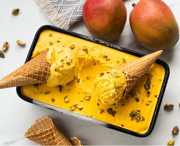 يعد الايس كريم من المثلجات المفضلة للصغار والكبار خاصة في فصل الصيف للشعور بالانتعاش وترطيب الجسم في درجات الحرارة المرتفعة ويمكن تحضيره بالمنزل بمكونات طبيعية وسهلة دون الحاجة لشرائه من الخارج إليك طريقة تحضيره بالمانجو والكنتالوب :