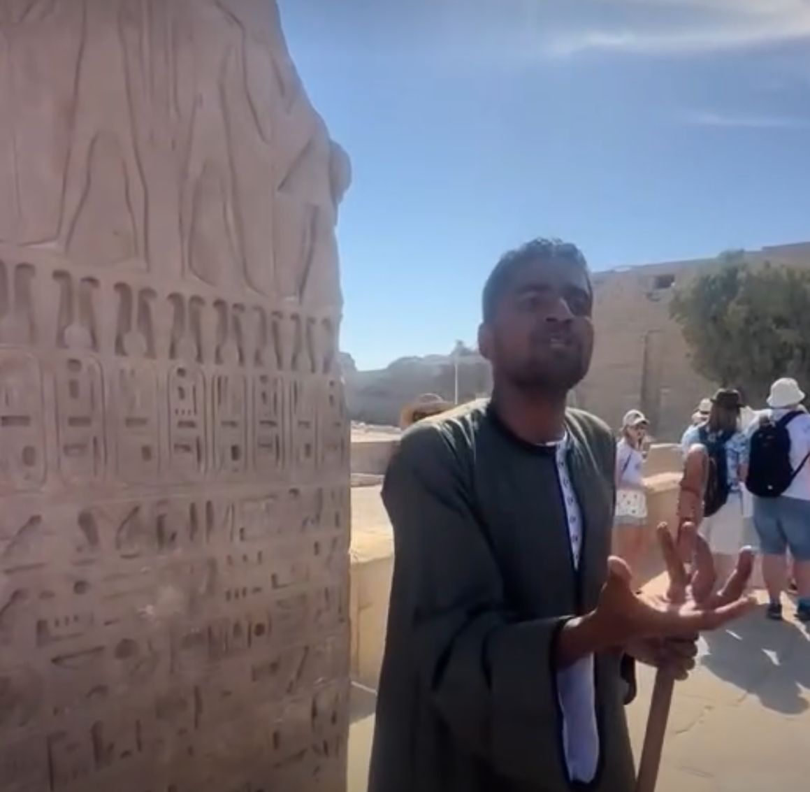 تداول رواد مواقع التواصل الاجتماعي مقطع فيديو لشاب مصري من قنا يشرح تاريخ وآثار مصر باللغة الفرنسية للسائحين بشكل متقن ومبهر.