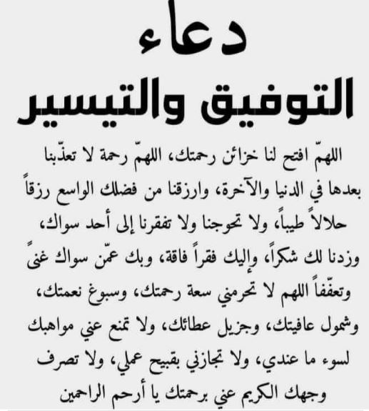 اللهم يا عظيم السلطان ياقديم الإحسان يا دائم النعماء، اللهم افتح لي ما تسكر ويسر لي ما تعسر، اللهم إن كان رزقي في السماء فأنزله، وإن كان في الأرض فأخرجه، وإن كان بعيدا عني قربه، وبارك لي فيه يارب العالمين.