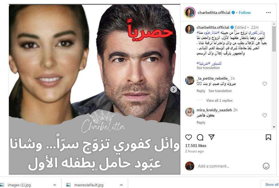 اللبنانية شربليتا تفجّر مفاجأة: وائل كفوري تزوّج سرًّا وينتظر طفله الأول من شانا عبود