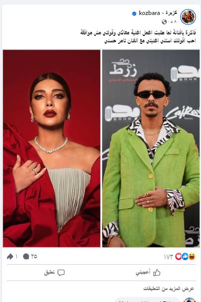كزبرة يوجه رساله طريفة لـ أصالة بعد رفضها الغناء معه (صورة)