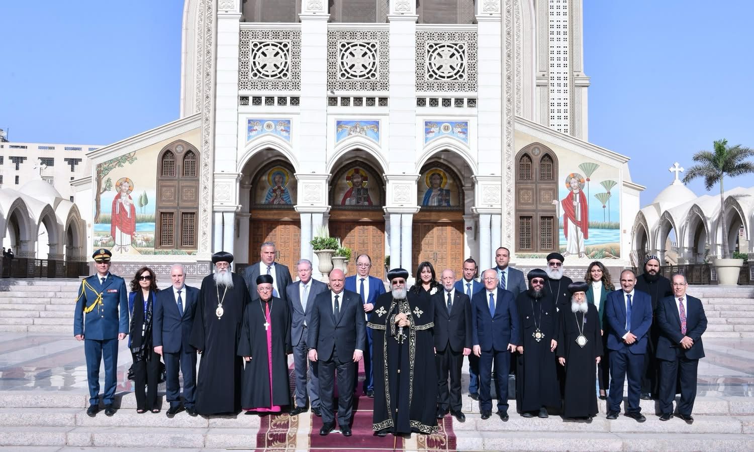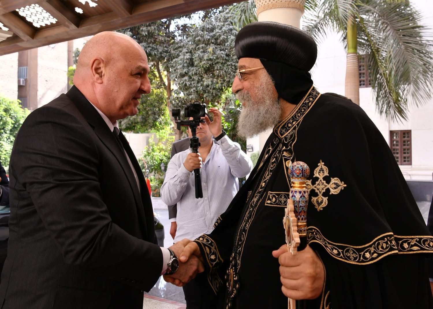 رحب قداسة البابا بالرئيس والوفد المرافق معربًا عن سعادته بهذه الزيارة التي تعد الأولى لمقر الكنيسة القبطية الأرثوذكسية.