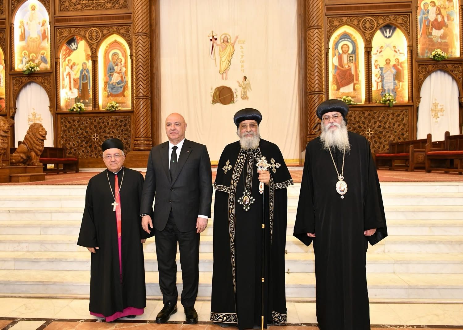 البابا تواضروس يستقبل الرئيس اللبناني بالكاتدرائية