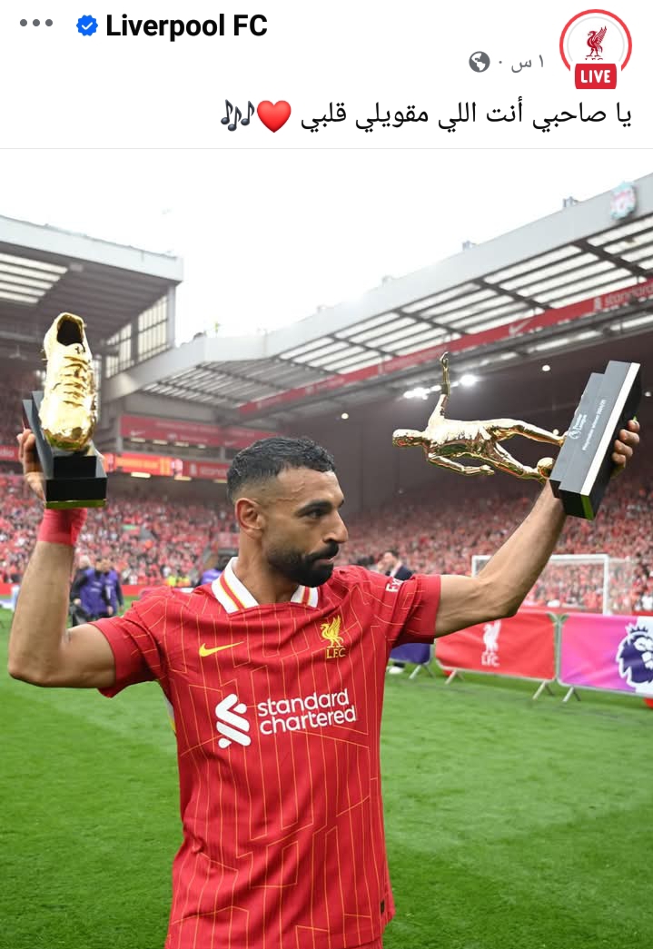 "انت اللي مقويلي قلبي".. ليفربول يحتفل بمحمد صلاح على طريقته الخاصة