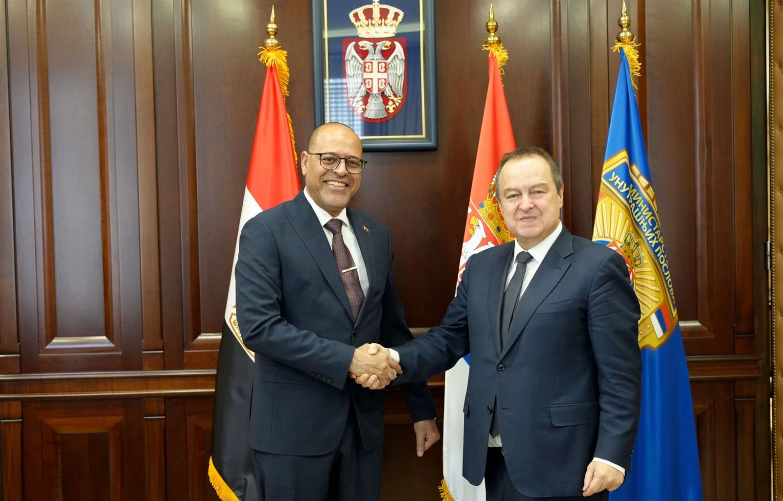 التقى الوزير "جبران" ، اليوم مع ايفيتسا داتشيتش وزير الداخلية الصربي، وذلك بحضور السفير باسل صلاح، سفير مصر في العاصمة بلجراد، و إبراهيم حمزة الشيخ، نائب السفير.
