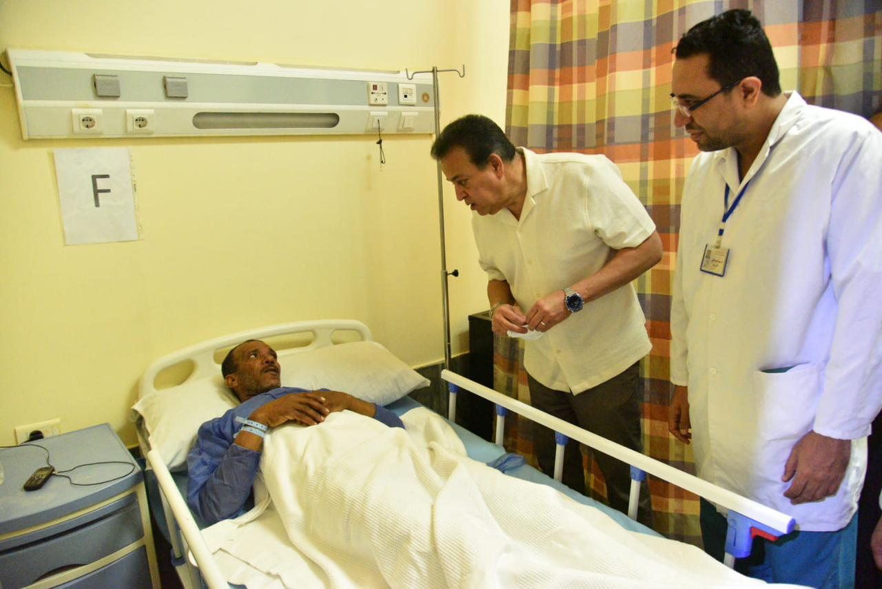 ونوه إلى أن الوزير تفقد القسم الداخلي بالمستشفى، واطلع على تطورات الحالة الصحية للمرضى بالقسم، كما استمع إلى آرائهم ومدى رضاهم عن الخدمة، موجهًا بتوفير كافة الخدمات الطبية لهم.