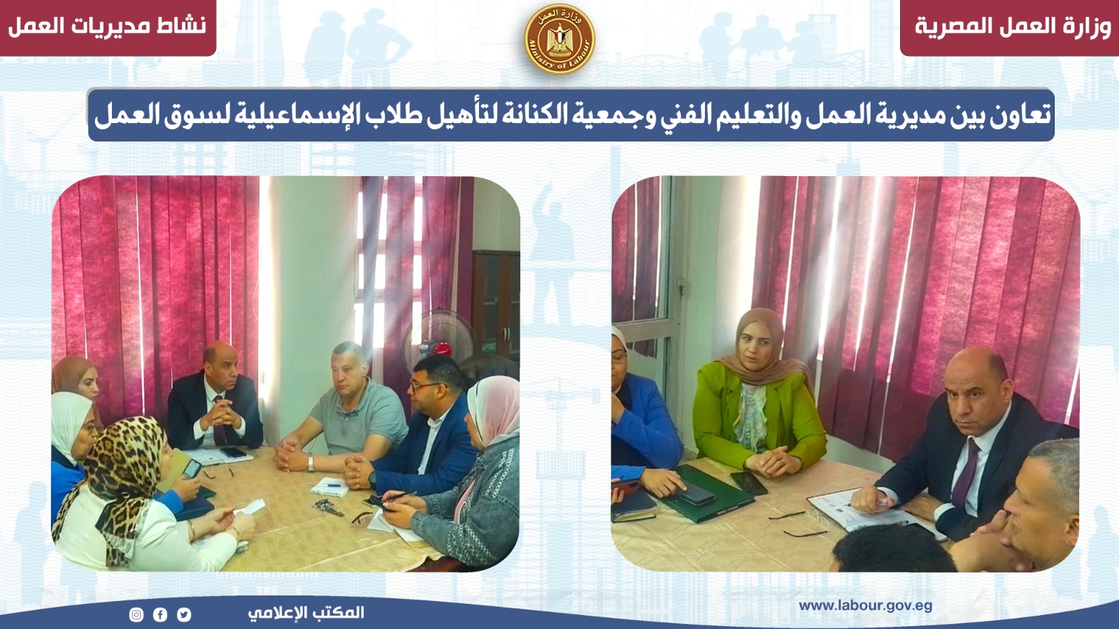 7-تعاون بين مديرية العمل والتعليم الفني وجمعية الكنانة لتأهيل طلاب الإسماعيلية لسوق العمل