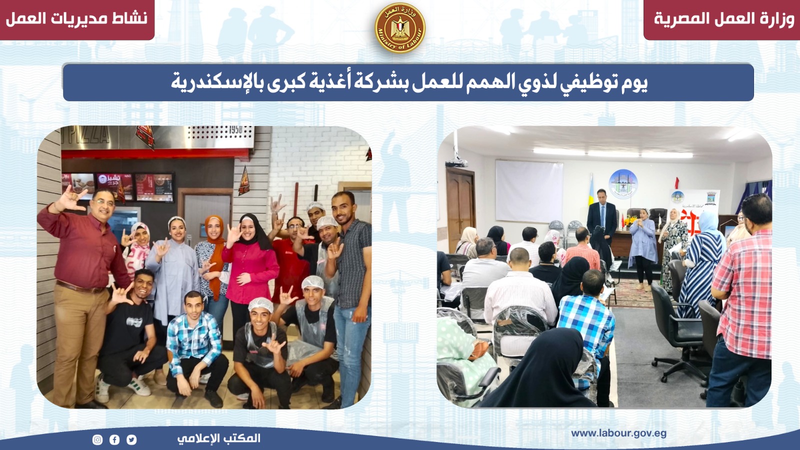 4ـ يوم توظيفي لذوي الهمم للعمل بشركة أغذية كبرى بالإسكندرية