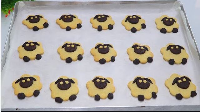 ثم تدخل الفرن على ورق زبدة لمدة 15 دقيقة أو حتى تمام النضج ويقدم كوكيز الخروف .