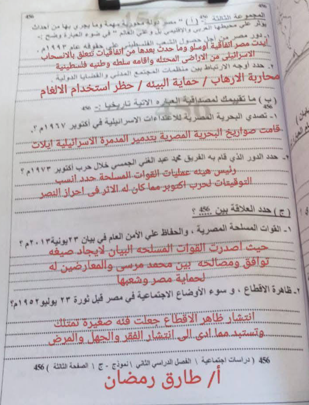 - نموذج حل امتحان الدراسات الصف الثالث الإعدادي